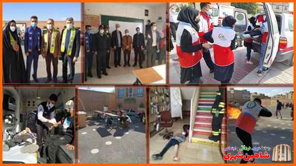 این مانور با حضور جمعی از مسئولین و با همکاری آموزش و پرورش، سازمان دانش آموزی،آتش نشانی ،نیروی انتظامی، جمعیت حلال احمر، فرمانداری و شهرداری شهرستان شاهین شهر و میمه و مدیریت محترم دبیرستان زنده یاد یاری زاده اجرا شد.