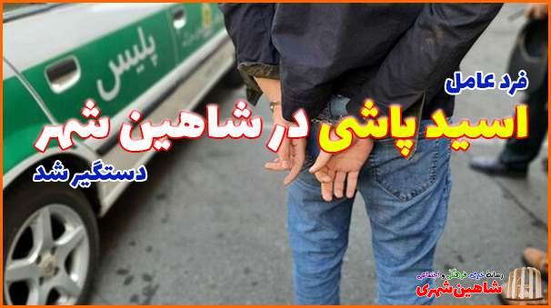 به گزارش پایگاه خبری شاهین شهری به نقل از فرماندهی نیروی انتظامی شهرستان شاهین شهر و میمه ، عصر روز سهشنبه ۱۴ دی ماه یک مورد اسیدپاشی به مرکز فرماندهی عملیات پلیس ۱۱۰ گزارش شد که پس از یک عملیات ویژه پلیس شخص مجرم دستگیر شد.